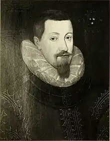 The king invited the Earl of Mar to join them "making merry" at Gask on 28 July 1595.[10] This was probably the "in-fare" feast for the wedding of Anne Murray.[11] James VI stayed at Tullibardine for the first week in January 1598.[12] In April 1598 the Duke of Holstein, brother of Anne of Denmark visited Tullibardine on a progress with the Duke of Lennox.[13]
