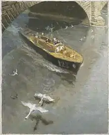 During World War II, a number of paintings by Platt were purchased by the War Artists' Advisory Committee[13] and in 1943 he was awarded a full-time contract to produce paintings for the Ministry of War Transport. Over the next year he painted scenes of river traffic, the maritime rescue services, ocean transport, docks and marshalling yards. He mostly worked on and around the Thames in London from a studio in Putney, but he also visited Liverpool and Cornwall to complete his commission.[14]
