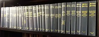 Selden's collection was the largest received by the Bodleian in the seventeenth century, comprising around 8,000 items.[43] Even this massive collection did not represent the extent of Selden's library. Duplicates, meaning books the library already owned, were given to Gloucester Cathedral library.[41] A rumor also circulated in the decades after Selden's death that part of his library had remained in London and was destroyed by a fire. The 1704 edition of Edward Chamberlayne's The Present State of England claimed that a fire at the Inner Temple destroyed "8 Chests full" of Selden's manuscripts.[44] Still, the collection the Bodleian received was large enough that it required several years and multiple librarians to fully catalogue.[45] Since then, the original collection has been enhanced by further acquisitions, most notably by a group of forty Selden manuscripts purchased by the Bodleian from James Fairhurst in 1947.[46][43] The Selden collection at the Bodleian houses more than 400 manuscript volumes taking up more than 40 meters (approx. 130 feet) of shelf space.[47][48] The linguistic range of these manuscripts reflects Selden's interest in eastern and other languages. The languages represented include