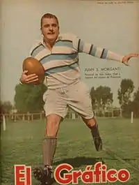 In 1951, Morganti was called up to join the national team that played the first South American championship that same year.[4] Morganti was captain of the national team that played the final game v. Chile at GEBA stadium, ending with a victory for Argentina by 13–3, therefore crowning champion.[5]