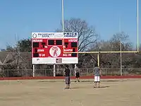 Students playing football inside Indian Stadium of Jourdanton High School on New Year's Day 2010
