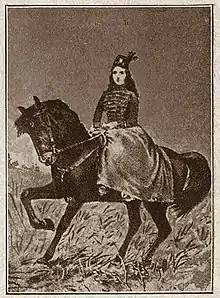 Juana Azurduy de Padilla (July 12, 1780 – May 25, 1862)[1] was a guerrilla military leader from Chuquisaca, Viceroyalty of the Río de la Plata (now Sucre, Bolivia).[2] She fought for Bolivian and Argentine independence alongside her husband, Manuel Ascencio Padilla, earning the rank of Lieutenant Colonel. She was noted for her strong support for and military leadership of the indigenous people of Upper Peru. Today, she is regarded as an independence hero in both countries.[3]