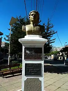 In July 2015, a 25-ton, 52-foot-high statue of Azurduy commissioned by Argentine president Cristina Fernández de Kirchner with the aid of a US$1 million donation by Bolivian president Evo Morales. Azurduy was an exemplar of the forgotten or suppressed history of the nation's indigenous populations. The Argentine sculptor and activist for indigenous rights chosen for the commission, Andrés Zerneri, said the Azurduy monument provided Argentines with "a way of seeing our identity", articulating "not just a representation of our shared past, but also a call for future action."[18] The huge statue was inaugurated in the space where a statue of Cristopher Columbus stood, donated by the Argentine Italian community for the 1910 centennial of Argentine independence. As of December 2015, months after its inauguration, it showed weather damage. With Fernández de Kirchner succeeded by conservative Mauricio Macri in the presidency and a vote by the municipal government of Buenos Aires, and due to the construction of the Paseo del Bajo highway, the Azurduy statue was moved to the Plaza del Correo, in front of the "Palacio de Correos y Telecomunicaciones", which hosts the Kirchner Cultural Centre, and Zerneri was able to repair the statue, which had been inaugurated in a rush before Kirchner left office.[19][20]