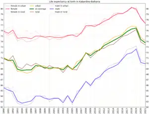 - ↑ "Ожидаемая продолжительность жизни при рождении" [Life expectancy at birth]. Unified Interdepartmental Information and Statistical System of Russia (in Russian). Archived from the original on February 20, 2022. Retrieved June 28, 2022.
