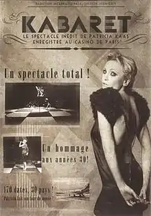 Kabaret: Live au Casino de Paris is a home video/live album by French singer Patricia Kaas. It was released on DVD in France on 18 May 2009. Later, on 25 September 2009 it was issued as a two-disc CD/DVD set in Germany. The video/album was recorded in January 2009 during the concerts at the Casino de Paris, which promoted Kabaret (2008). Kabaret: Live au Casino de Paris includes songs from Kabaret, and also Kaas previous hits.[1][2] The DVD debuted and peaked at number two on the French DVD Chart, only behind Celine Dion's Live à Quebec.