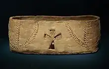 A Zoroastrian ossuary (with the shape of a cross, but unrelated to Christianity), dated 6-7th century CE, was also discovered in Kafir Kala.[11] Numerous seals and pottery items have also been found.