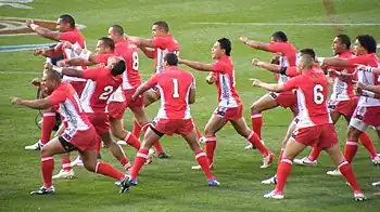 The Tonga national rugby union team performing the Sipi Tau before a match