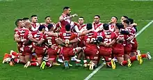 The Tonga national rugby league team performing the Sipi Tau before a match in 2008