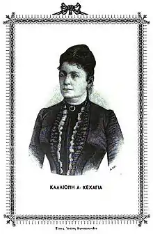 Kalliopi A. Kehagia (Καλλιόπη Κεχαγιά) (c. 1839–1905), was a Greek feminist and educator. Head of the Hill School for girls in Athens and the Zappeion School for Girls in Istanbul, she also founded the Society for Promoting Women's Education.[1]