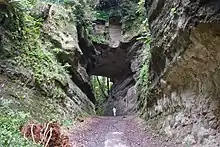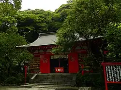 An important and characteristic feature of Kamakura is a type of grave called yagura (やぐら).[48] Yagura are caves dug on the side of hills during the Middle Ages to serve as tombs for high-ranking personalities and priests.[48] Two famous examples are Hōjō Masako's and Minamoto no Sanetomo's cenotaphs in Jufuku-ji's cemetery, about 1 kilometre (0.6 mi) from Kamakura Station.