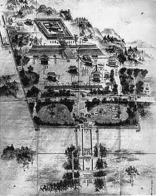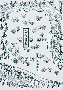 Northwest of Kamakura lies Yamanouchi, commonly called Kita-Kamakura because of the presence of East Japan Railway Company's (JR) Kita-Kamakura Station. Yamanouchi, however, was technically never a part of historical Kamakura since it is outside the Seven Entrances. Yamanouchi was the northern border of the city during the shogunate,[3] and the important Kobukorozaka and Kamegayatsu Passes, two of Kamakura's Seven Entrances, led directly to it. Its name at the time used to be Sakado-gō (尺度郷).[4] The border post used to lie about a hundred meters past today's Kita-Kamakura train station in Ofuna's direction.[3]