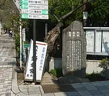 The stele on the spot where Yoritomo's Ōkura Bakufu used to stand
