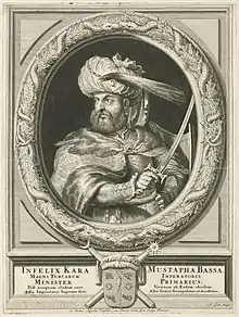 Merzifonlu Kara Mustafa Pasha (Ottoman Turkish: مرزيفونلى قره مصطفى پاشا; Turkish: Merzifonlu Kara Mustafa Paşa; "Mustafa Pasha the Courageous of Merzifon"; 1634/1635 – 25 December 1683) was an Ottoman nobleman, military figure and Grand Vizier of Turkish origin, who was a central character in the Ottoman Empire's last attempts at expansion into both Central and Eastern Europe.