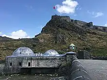 The Seljuks quickly relinquished direct control over Kars and it became a small emirate whose territory corresponded closely to that of Vanand, and which bordered the similarly created but larger Shaddadid emirate centered at Ani. The Kars emirate was a vassal of the Saltukids in Erzurum, whose forces were effective in opposing Georgian attempts at seizing Kars. Thus, it was only in 1206 that Zakare of the Zakarids–Mkhargrdzeli succeeded in capturing Kars, joining it to their fiefdom of Ani.[11] It was conquered in 1242 by the Mongols[12] and later Kars fell under Georgian influence. During the reign of David IX of Georgia, the Ilkhanate occupied the southern territories of the Kingdom of Georgia, which included Kars.[13] By 1358, the city was ruled by the Jalayirids and in 1380 it fell to the Qara Qoyunlu.[14] In 1387 the city was leveled and the surrounding countryside was devastated by Timur (Tamerlane).[14] Anatolian beyliks followed for some time after that, until it firstly fell into the hands of the Qara Qoyunlu and subsequent Aq Qoyunlu. After the Ak Koyunlu, as it went naturally for almost all their former territories, the city fell into the hands of the newly established Safavid dynasty of Iran, founded by king Ismail I. Following the Peace of Amasya of 1555 that followed the Ottoman–Safavid War of 1533–1555, the city was declared neutral, and its existing fortress was destroyed.[15][16] In 1585, during the Ottoman–Safavid War of 1579–1590, the Ottomans took the city alongside Tabriz.[17] On June 8, 1604, during the next bout of hostilities between the two archrivals, the Ottoman–Safavid War of 1603–1618, Safavid ruler Abbas I retook the city from the Ottomans.[18] The fortifications of the city were rebuilt by the Ottoman Sultan Murad III and were strong enough to withstand a siege by Nader Shah of Persia, in 1731.[19] It became the head of a sanjak in the Ottoman Erzurum vilayet.[19] In July 1744, the city was again besieged by Nader Shah. Later, in August 1745, a huge Ottoman army was routed at Kars by Nader Shah during the Ottoman–Persian War of 1743–1746.[20] As a result, the Turks fled westwards, raiding their own lands as they went.[20]