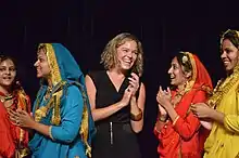 Katherine Maher with giddha dancers at WikiConference India 2016.