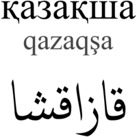 Kazakh in Cyrillic, Latin, and Perso-Arabic scripts.