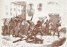 In 1805 Italian troops served on garrison duty along the English Channel, during 1806–07 they took part in the sieges of Kolberg and Danzig and fought in Dalmatia.[8] From 1808 to 1813 whole Italian divisions served in Spain, especially distinguishing themselves under Suchet at Tarragona and Saguntum.[9][10]