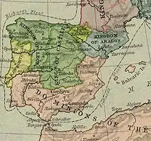 During this period, Basque territory extended on the west to somewhere around the headwaters of the Ebro river.[17] Equally Einhart's Vita Karoli Magni pinpoints the source of the Ebro in the land of the Navarrese.[18] However, this western region fell under the influence of the Kingdom of Asturias.