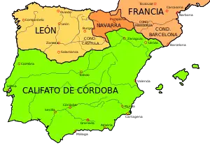 The role of Pamplona as a focus coordinating both rebellion against and accommodation with Córdoba seen under Íñigo would continue under his son, García Íñiguez (851/2–882), who formed alliances with Asturias, Gascons, Aragonese and with families in Zaragoza opposed to Musa ibn Musa. This established a pattern of raids and counter-raids, capturing slaves and treasure, as well as full military campaigns that would restore full Córdoban control with renewed oaths of fidelity.[19] His son Fortún Garcés (882-905) spent two decades in Córdoban captivity before succeeding in Pamplona as vassal of the Emirate. Neither of these kings would make significant territorial expansion. This period of a fractious, but in the end subservient, Navarre came to an end amidst a period when generalized rebellion within the Emirate prevented them from being able to suppress the inertial forces in the western Pyrenees. The ineffectual Fortún was forced to abdicate in favor of a new dynasty from the vehemently anti-Muslim east of Navarre, the founders of which took a less accommodationist view. With this change, al-Andalus sources shift to calling the Pamplona rulers 'tyrants', as with the independent kings of Asturias: Pamplona had passed out of the Córdoban sphere.[27]