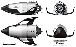 Kliper (Клипер, English: Clipper) was an early-2000s proposed partially-reusable crewed spacecraft concept by RSC Energia. Due to lack of funding from the ESA and RSA, the project was indefinitely postponed by 2006.