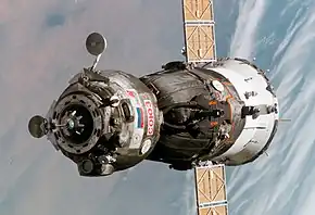 In late 2005 Kliper's design was changed again. In order to fit the Kliper on the planned upgraded version of the Soyuz-2 rocket, labeled the Soyuz-2-3, Kliper would be 'split up' into two spacecraft, the Kliper crew vehicle and Parom (rus. "ferry"), a space tug. Parom would have been a permanent orbital spacecraft awaiting Kliper in orbit, docking with it and then providing orbital manoeuvering and boosting Kliper to higher orbits in order to dock with the International Space Station. The Parom was planned to be indefinitely reusable, refueling itself via the cargo container, space station, or spacecraft that it is attached to.[17][18]