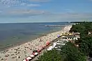 In the 19th century the city had a small but active Polish population that increased during the century to account for 1.5% of the population by 1905.[43] The Polish community funded a Catholic school and the Church of Saint Marcin where masses in Polish were held (initially throughout the season, after about 1890 all the year), were established.[6][44][45] Dating back to 1261 Kolberg's Jewish population amounted to 528 people in 1887, rising to 580 two years later, and although many moved to Berlin after that date they numbered around 500 by the end of the Nineteenth century[46]