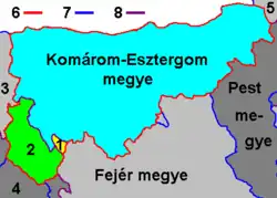 The Komárom comitatus arose in the 11th century as one of the first comitatuses of the Kingdom of Hungary. It was situated within a radius of about 20 km around Komárom.