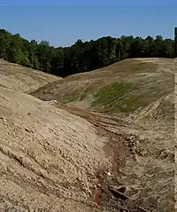 Because of the extensive contamination, and its on-going identification as the cleanup proceeded, the NPS has made numerous predictions about the end-date for cleanup and remediation of the areas.[3] For example, in July 2011 it was predicted that the Krejci dump site would be in the final stages of revegetation in the spring of 2012. But it wasn't until August 2012 that the NPS declared "comprehensive post-excavation soil sampling effort establishes that remediation goals for the 46-acre former dump site have been met," and, "The final steps necessary to restore the Site may now begin, including final grading; re-vegetation using native meadow grasses, forbs and shrubs; and restoration of 3 acres of wetland and wet meadow habitats."[7] The Ohio Division of Environmental Response and Revitalization (DERR) also had a projected end-date of sometime in 2012.[7][8]