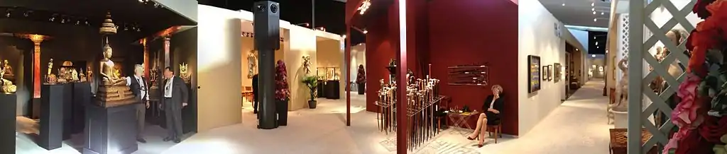 The offer comprises all periods and basically all genres of arts and crafts are on show, although the focus may vary. Objects from art and curiosity cabinets and textile art (rugs and carpets) are included, so are vintage cars.[4]