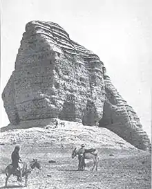 He was the first king to build a royal residence bearing his name,[10] a new capital city founded over an older settlement and built around 1390 BC, named Dur-Kurigalzu, or 'fortress of Kurigalzu', in the far north of Babylonia (modern ‘Aqar Qūf).[11] It was positioned to protect an important trade route that led east across the Iranian plateau to Afghanistan, the source of lapis lazuli.[12] The 170-foot-high ziggurat of Enlil can still be seen on the western outskirts of Baghdad, with its reinforcing layers of reed matting and bitumen and the remains of three temples at its foot. Rawlinson first identified the site in 1861 from the brick inscriptions. Excavated in 1942–45 by Seton Lloyd and Taha Baqir, the city covered 225 hectares and included the Egal-kišarra, or “Palace of the Whole World”, a vast palatial and administrative complex.[13]