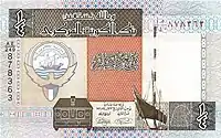 After the creation of the Central Bank of Kuwait in 1969 as a replacement to the Kuwaiti Currency Board, new KD 14, KD 12 and KD 10 notes were issued from 17 November 1970, followed by the new KD 1 and KD 5 notes of the second series on 20 April 1971.[5] This second series was withdrawn on 1 February 1982.