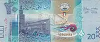 The Kuwaiti dinar (Arabic: دينار كويتي, code: KWD) is the currency of Kuwait. It is sub-divided into 1,000 fulūs.[2]