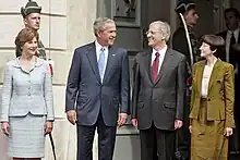 László Sólyom and his wife Erzsébet Sólyom (far right) with US President George W. Bush and his wife Laura Bush, 22 June 2006