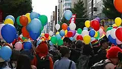 Tokyo Rainbow Pride has been held annually since 2012, with attendance increasing every year.[22] A 2015 opinion poll reflected that the majority of its respondents supported the legalization of same-sex marriage.[23] Further opinion polls conducted over the following years have found high levels of support for same-sex marriage among the Japanese public, most notably the younger generation.[24][25] However, a 2020 survey of over 10,000 LGBT people in Japan found that 38 percent of LGBT people had been harassed or assaulted.[26]