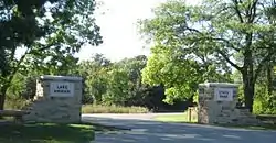 On November 15, 1990 three areas of the park were listed on the National Register of Historic Places. Their historic importance is derived from their association with the CCC. The park was part of a larger study of Iowa's state parks called the Civilian Conservation Corps Properties in Iowa State Parks: 1933-1942. Area A focuses on a picnic area that includes the park's entrance portals, a picnic shelter, two latrines, three fountains, a footbridge, and the associated landscaping and trails. These facilities were built from December 1934 to April 1935.[4] Area B includes the bathhouse, restroom, and concession. Company 769 began construction of these facilities in May 1935, and the side camp completed them by September 1937.[6] Area C is the lodge or refectory. It was begun in July 1936 and completed in July 1937.[7] The Rustic style was used in the design of the buildings. The significance of this architectural style is that it was designed to blend into its natural surroundings by means of its material, design, and workmanship.[4] Areas A and B are historic districts, while Area C is an individual listing.