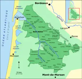 - ↑ Maison du Parc, PNRLG (2011). "41 communes du Parc naturel régional des Landes de Gascogne" (PDF) (in French). Parc Naturel Régional des Landes de Gascogne. Retrieved 29 October 2011.