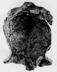 The Chenchiawo mandible was the most complete mandible from Pleistocene of China at the time, preserving most elements except for pieces of the rami (the ascending portion which connects with the skull). Woo considered the specimen an elderly female based on size and wearing of the teeth. The mandible is mostly consistent with that of Peking Man, except the rami ascend at a smaller angle, the mental foramen is placed lower, the rows of molar teeth have significantly larger angles, and the teeth are larger than what would be expected for a female.[1]