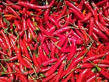 • Chili pepper – (Lao: ໝາກເຜັດ; Lao pronunciation: [ma᷆ːk.pʰét], Isan: พริก, Lao pronunciation: [pʰīk]), seven popular types.