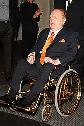 Larry Claxton Flynt Jr. (/flɪnt/; November 1, 1942 – February 10, 2021) was an American publisher and the president of Larry Flynt Publications (LFP). LFP mainly produces pornographic magazines, such as Hustler, pornographic videos, and three pornographic television channels named Hustler TV. Flynt fought several high-profile legal battles involving the First Amendment, and unsuccessfully ran for public office. He was paralyzed from the waist down due to injuries sustained in a 1978 assassination attempt by serial killer Joseph Paul Franklin.[1]: 170–71 In 2003, Arena magazine listed him at No. 1 on the "50 Powerful People in Porn" list.[2]