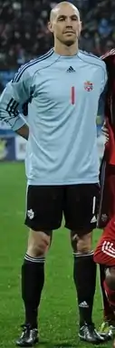 He made his debut for Canada in a January 2000 friendly match against Bermuda but had to compete with Pat Onstad for the national goalkeeper's jersey. By November 2009, he earned a total of 29 caps. He has represented Canada in 6 FIFA World Cup qualification matches.[14] Hirschfeld's big break with Canada came at the 2002 CONCACAF Gold Cup, where he was named the best goalkeeper of the tournament after allowing only four goals in five matches and recording an impressive semifinal shutout against the United States. This caused English club Tottenham Hotspur F.C. to take interest, and Hirschfeld signed with them in September 2002. On 8 June 2012, Hirschfeld was sent off in a 2014 World Cup qualifier against Cuba for handling the ball outside his penalty area, but Canada prevailed by a score of 1-0 despite the numerical disadvantage.