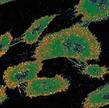 8. Schneckenburger, P.; M. Wagner; H. Schneckenburger. (2010). "Fluorescence imaging of membrane dynamics in living cells". J. Biomed. 15 (4): 046017–046017–5. Bibcode:2010JBO....15d6017W. doi:10.1117/1.3470446. PMID 20799819.