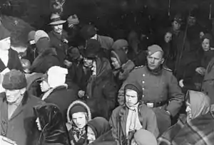 Despite Nazi Germany's official racism, the extermination of Eastern European native populations was not always necessary because the racial policy of Nazi Germany regarded some Eastern European peoples as being of Aryan-Nordic stock, especially the local leaders.[74] On March 4, 1941, Himmler introduced the German People's List (Deutsche Volksliste), which intended to segregate the inhabitants of German-occupied territories into categories of desirability according to criteria.[75] In the same memorandum, Himmler advocated the kidnapping of children who appeared to be Nordic because it would "remove the danger that this subhuman people (Untermenschenvolk) of the East through such children might acquire a leader class from such people of good blood, which would be dangerous for us because they would be our equals."[76][77] According to Himmler, the destruction of the Soviet Union would have led to the exploitation of millions of peoples as slave labor in the occupied territories and the eventual re-population of the areas with Germans.[78]