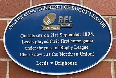 A special general meeting was held in 1895 that voted decisively to support the breakaway Northern Union as a founder member, resulting in two resignations from the club. Leeds' début in the Northern Union was a 6–3 success at Leigh on 7 September 1895, the inaugural day of the new competition.[3]