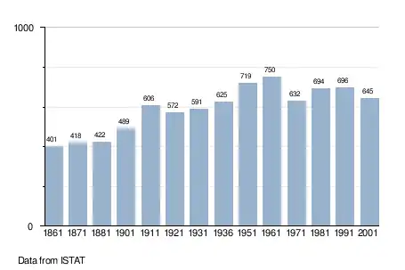 - ↑ "Popolazione Residente al 1° Gennaio 2018". Italian National Institute of Statistics. Retrieved 16 March 2019.