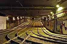 The station is decorated with paintings by Hamsi Boubeker.[1] On a lower floor, there is unused second station with two platforms. In the tunnel between Anneessens and Lemonnier, there is a tunnel towards this station.