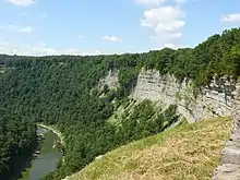 The bedrock exposed in the gorge is Devonian in age, mostly shales, with some layers of limestone and sandstone. The rock was laid down in an ancient inland sea, and it holds many marine fossils. The landform of the section of the Genesee River valley represented by the park is geologically very young, caused by a diversion of the river from the old valley by the last continental glacier, which forced the river to cut a new section of valley.