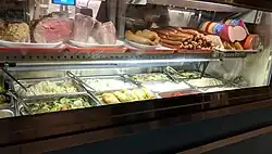 Liebman's Deli is a Jewish deli in Riverdale, New York and is the last-standing kosher deli in the Bronx.[1][2] It was one of hundreds of kosher delis in the Bronx when it opened, but now is the sole representative of that cuisine in the borough.[3][4] Liebman's was founded in 1953 by Joe Liebman and sold to Joseph Dekel in 1980.[5] Yuval Dekel, his son, took over in 2002 when his father passed away.[6] Dekel was previously a heavy metal drummer in a band, but now makes the pastrami and supervises the operation, along with his wife whom he met at the restaurant and now works there.[7] The restaurant will open a location in Ardsley, New York.[8] Liebman's is rated by Zagat and Michelin Guide.[9][10][11] It was covered by Anthony Bourdain for Parts Unknown[12] Liebman's is noted for their matzo ball soup and house-made pastrami, and Jewish delicacies such as stuffed derma, knishes, pickles, as well as kosher wine.[13][14][15][16][17] It is frequented by Jewish New York Yankees player Harrison Bader who grew up in nearby Bronxville, New York.[18]