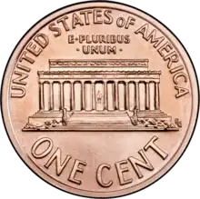 From 1959 (the 150th anniversary of Lincoln's birth) to 2008, the memorial, with statue visible through the columns, was depicted on the reverse of the United States one-cent coin, which since 1909 has depicted a bust of Lincoln on its front.[60]