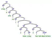 Tom Wasow proposes that word order arises as a result of utterance planning benefiting the speaker.[14] He introduces the concepts of early versus late commitment, where commitment is the point in the utterance where it becomes possible to predict subsequent structure.[14] Specifically, early commitment refers to the commitment point present earlier in the utterance and late commitment refers to the commitment point present later in the utterance.[14] He explains that early commitment will favour the listener since early prediction of subsequent structure enables faster processing. Comparatively, late commitment will favour the speaker by postponing decision making, giving the speaker more time to plan the utterance.[14] Wasow illustrates how utterance planning influences syntactic word order by testing early versus late commitment in heavy-NP shifted (HNPS) sentences. The idea is to examine the patterns of HNPS to determine if the performance data show sentences that are structured to favour the speaker or the listener.[14]