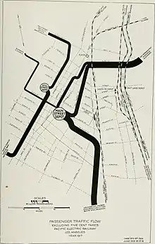 The following passenger rail lines were operated by the Pacific Electric Railway and its successors from the time of its merger in 1911 until the last line was abandoned in 1961. One count indicated that the company and its successors operated as many as 143 different routes in that time.[1]